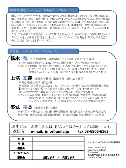 <2/19衣のUDPJ & UF商品研究会 コラボセミナー参加申込票>