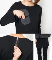 フラワーモチーフはポケット仕様になっており、フタの開閉で違った表情が楽しめるポップな60年代風のデザイン。