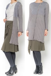 リブ部分にラメを入れた、エレガントなロングカーディガン。