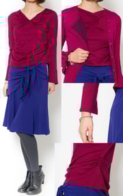 前身頃上部は裏側が配色になっており、袖口と裾のフリルが愛らしさを演出してくれます。